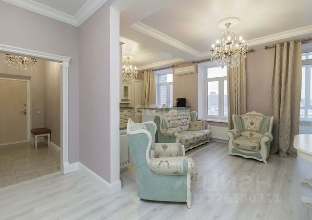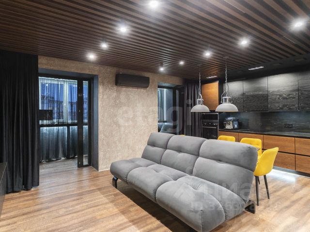 Планировка включает три спальни 20,9 кв.м, 18,6 кв.м, 16 кв.м, большой гардероб, просторную кухню-гостиную 32,7 кв.м объединенную с зоной отдыха, где многоуровневое освещение, включая трековые светильники, стильные люстры и скрытую LED-подсветку, создает разноплановый эффект. Кухонный гарнитур со столешницей из цельного натурального камня (Мексика) укомплектован встроенной техникой премиум-класса, кухонный стол изготовлен на заказ. Современная ванная комната с душевой зоной и ванной из натурального камня. Сан.узел с инсталляцией. Отделка керамический гранит (Италия) и мозаика. Встроенная стиральная машинка, сушилка, боллер есть, но не использовался (своя котельная, горячая вода без отключений) Дополнительные преимущества — изолированная гардеробная. Лоджия 7,7 кв.м с теплым полом и вместительной морозильной камерой.