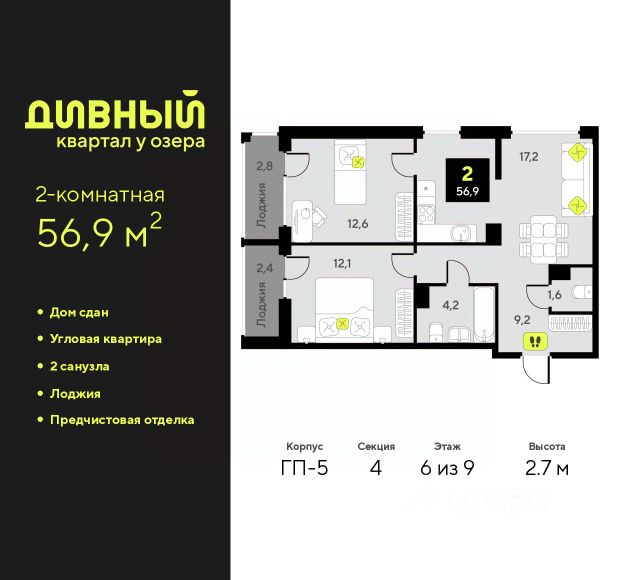 Просторная трехкомнатная квартира с предчистовой отделкой в ЖК "Дивный квартал у озера" на 2 этаже. Общая площадь: 90.2 кв.м., жилая: 48.8 кв.м., площадь просторной кухни-столовой: 21.9 кв.м. Квартира без проходных комнат, окна выходят нa три cтopoны дома. В квартире один балкон, один раздельный санузел. Высота потолков 2.7 м. Квартира будет сдаваться с предчистовой отделкой White Box: выровнены и оштукатурены стены, проведено электричество и отопление, установлены радиаторы. Вы также можете приобрести квартиру с ремонтом от застройщика, представленным в трех цветовых решениях Scandi, Wood и Coffee и включающим: ламинат, обои под покраску, двери, натяжной потолок, санузел с сантехникой. При желании вы можете заказать отделку под ключ, варианты возможных решений представлены в альбоме фотографий. Дом монолитный, черырехподъездный, переменной этажности, от 7 до 9 этажей. Квартира находится во 2-й секции высотой 9 этажей в корпусе ГП-5. На этаже 5 квартир. В подъезде 1 пассажирский и 1 грузовой лифт. На сегодняшний день строительство окончено, дом сдан в 4 квартале 2025 года. Оформление сделки по договору купли-продажи. "Дивный квартал у озера" современный жилой квартал, удобно расположенный в 10-ти минутах от центра Тюмени, в уютном районе рядом с зеленым массивом и озером Алебашево. Комплекс находится между улицами Мельникайте и Алебашевская, что обеспечивает его хорошую транспортную доступность до центра на автомобиле всего 10 минут. Рядом с комплексом расположен Лесопарк имени Гагарина, экзотический Парк дружбы между Россией и Республикой Корея. "Дивный квартал у озера" объединяет архитектуру современной городской застройки и природную эстетику. Уютные дворы жилого комплекса будут не только безопасными, но и тихими. Закрытая территория надёжно защищена от шума и посторонних глаз. Здесь будут места для отдыха, детские площадки, зоны для выгула собак. В холлах первого этажа расположены мягкая зона ожидания, общественные санузлы и просторная колясочная. Квартал будет располагать богатой инфраструктурой: на первых этажах домов разместятся магазины, пекарни, кофейни, пункты выдачи, аптеки, детские центры, цветочные салоны и многое другое, что сделает жизнь поистине комфортной. В комплексе есть теплый подземный паркинг и кладовые. #ZM9abb