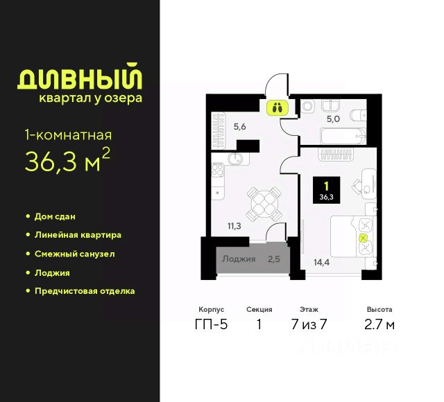 Трехкомнатная квартира от застройщика с предчистовой отделкой в ЖК "Дивный квартал у озера" на 5 этаже. Общая площадь: 90.5 кв.м., жилая: 44.9 кв.м., площадь просторной кухни-столовой: 22.9 кв.м. Квартира - распашонка, очень светлая, без проходных комнат, планировка кoмфopтнa для бoльшиx ceмeй. В квартире один балкон, один раздельный санузел. Высота потолков 2.7 м. Квартира будет сдаваться с предчистовой отделкой White Box: выровнены и оштукатурены стены, проведено электричество и отопление, установлены радиаторы. Вы также можете приобрести квартиру с ремонтом от застройщика, представленным в трех цветовых решениях Scandi, Wood и Coffee и включающим: ламинат, обои под покраску, двери, натяжной потолок, санузел с сантехникой. При желании вы можете заказать отделку под ключ, варианты возможных решений представлены в альбоме фотографий. Дом монолитный, черырехподъездный, переменной этажности, от 7 до 9 этажей. Квартира находится в 3-й секции высотой 9 этажей в корпусе ГП-5. На этаже 5 квартир. В подъезде 1 пассажирский и 1 грузовой лифт. На сегодняшний день строительство окончено, дом сдан в 4 квартале 2025 года. Оформление сделки по договору купли-продажи. "Дивный квартал у озера" современный жилой квартал, удобно расположенный в 10-ти минутах от центра Тюмени, в уютном районе рядом с зеленым массивом и озером Алебашево. Комплекс находится между улицами Мельникайте и Алебашевская, что обеспечивает его хорошую транспортную доступность до центра на автомобиле всего 10 минут. Рядом с комплексом расположен Лесопарк имени Гагарина, экзотический Парк дружбы между Россией и Республикой Корея. "Дивный квартал у озера" объединяет архитектуру современной городской застройки и природную эстетику. Уютные дворы жилого комплекса будут не только безопасными, но и тихими. Закрытая территория надёжно защищена от шума и посторонних глаз. Здесь будут места для отдыха, детские площадки, зоны для выгула собак. В холлах первого этажа расположены мягкая зона ожидания, общественные санузлы и просторная колясочная. Квартал будет располагать богатой инфраструктурой: на первых этажах домов разместятся магазины, пекарни, кофейни, пункты выдачи, аптеки, детские центры, цветочные салоны и многое другое, что сделает жизнь поистине комфортной. В комплексе есть теплый подземный паркинг и кладовые. #z6gaCb