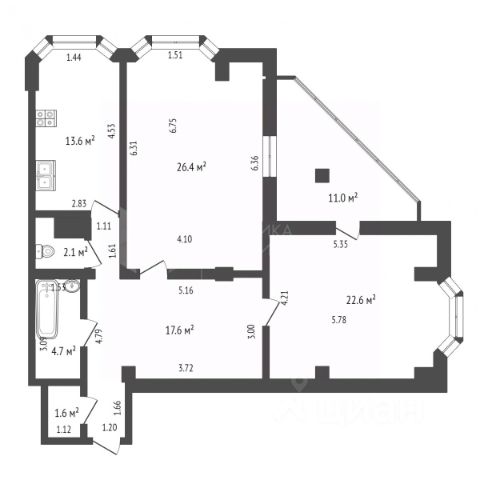 Номер в базе: 1767284 Продам квартиру на улице Самарцева в городе Тюмень.