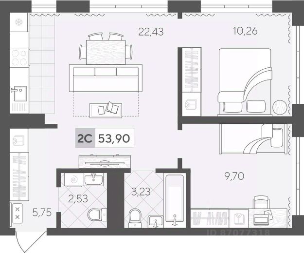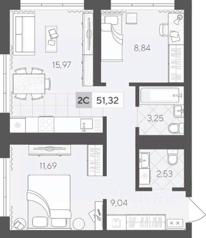 Продаётся 1-комнатная квартира в строящемся доме (ГП 2 (Сергея Корепанова, 34)), срок сдачи: IV-кв. 2027, общей площадью 32.1 кв.м., на 5 этаже. Новый жилой комплекс "Скандиа. Квартал у Леса" от Специализированного застройщика "СКАНДИА У ЛЕСА" расположен в г. Тюмень на ул. Бориса Прудаева.