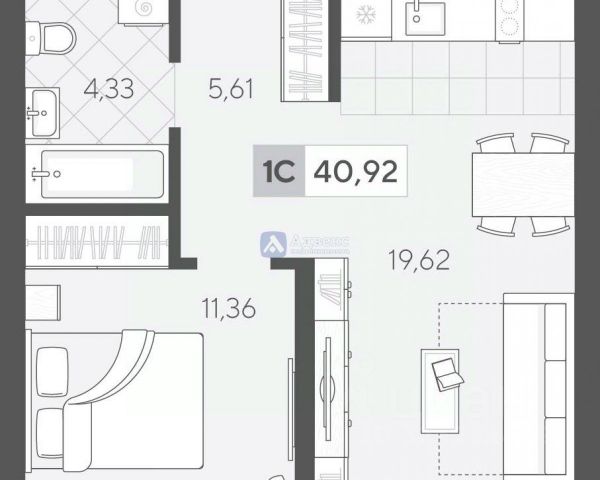 Продаётся 1-комнатная квартира в строящемся доме (ГП 2 (Сергея Корепанова, 34)), срок сдачи: IV-кв. 2027, общей площадью 39.2 кв.м., на 4 этаже. Новый жилой комплекс "Скандиа. Квартал у Леса" от Специализированного застройщика "СКАНДИА У ЛЕСА" расположен в г. Тюмень на ул. Бориса Прудаева.