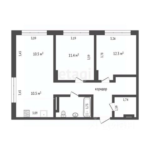 Лоджия с панорамным остеклением создают ощущение простора, а потолки высотой 2,75 м добавляют света и комфорта. В большой прихожей - 5,3 кв.м. - есть возможность установить вместительный шкаф-купе до самого потолка. Санузел совмещенный.