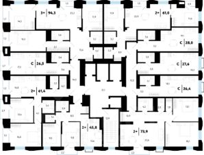 Планировка очень комфортная и продуманная. Помимо жилых зон, предусмотрено удобное место для подсобных помещений: есть просторная колясочная, современное и уютное лобби.