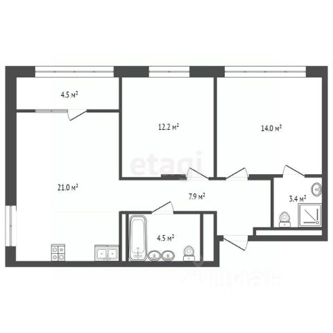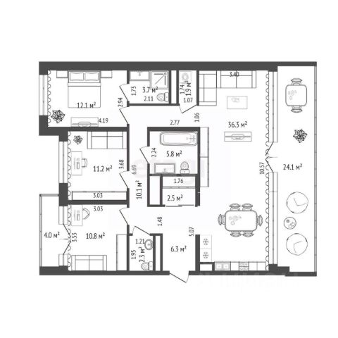 3 спальни, одна из которых с собственным санузлом, 2 санузла и еще 2 технических помещения, которые вы можете использовать по своему усмотрению как гардеробную, постирочную или кладовую.