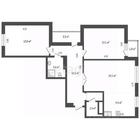 • общая площадь 60.5м2