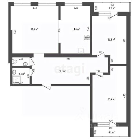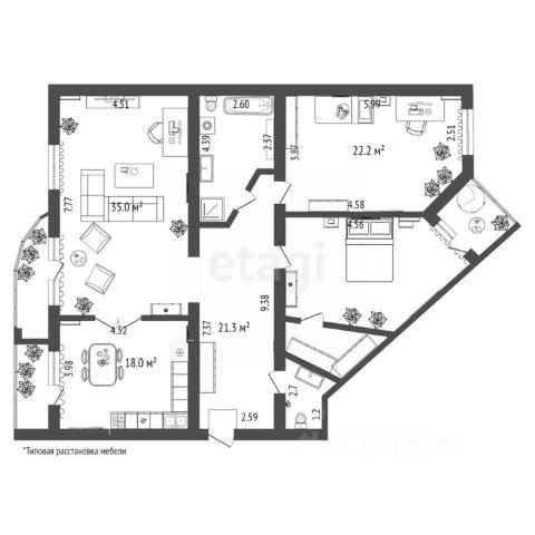 Просторная трехкомнатная квартира 135,6 кв.м. Окна квартиры выходят на две стороны, что обеспечивает естественную вентиляцию и обилие естественного света.