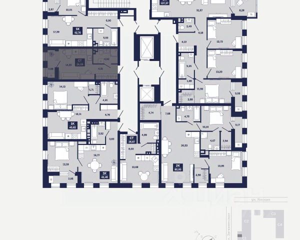 * 2 лифта- пассажирский и грузовой