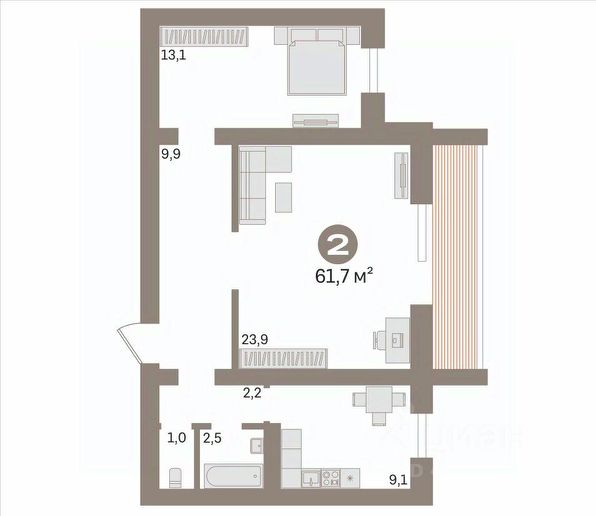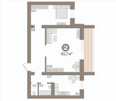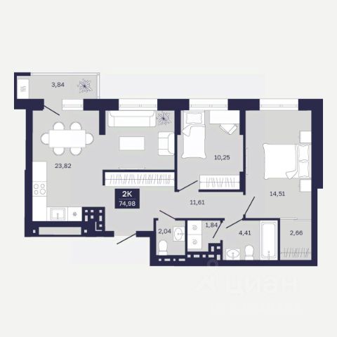 Комната и кухня имеют фактически большие размеры, чем это указано в техпаспрте.