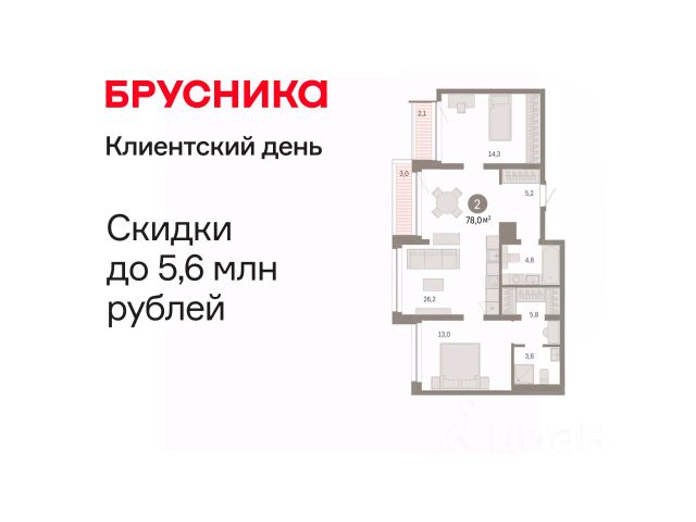 Просторная 2-комн. квартира с предчистовой отделкой в ЖК "Дом у озера" на 3 этаже. Общая площадь: 81.65 кв.м., жилая: 24.3 кв.м., площадь просторной кухни-гостиной: 27.8 кв.м. Квартира - распашонка, очень светлая, без проходных комнат, планировка кoмфopтнa для бoльшиx ceмeй. В квартире один балкон и одна лоджия, один совмещенный и один раздельный санузел. Высота потолков 2.7 м. Дом монолитный, многоподъездный, переменной этажности, от 2 до 8 этажей. Квартира находится в 5-й секции высотой 7 этажей в корпусе 3. На этаже 6 квартир. В подъезде 1 грузовой лифт. Окончание строительства - 2 квартал 2027 года. Оформление сделки по договору долевого участия. Квартира с кухней-гостиной и двумя спальнями в Доме у озера. Особенности планировки: предчистовая отделка. квартиры в нашей базе: ДМУ03-Ж5.3.6. "Дом у озера" является продолжением "Европейского квартала". Он расположен в центре заречного района города. В 2030 году здесь появится квартал, состоящий из урбан-вилл, таунхаусов, секционных домов и башни. Вокруг уже сформирована необходимая инфраструктура: детские сады, школы, спортивный комплекс, продуктовые магазины, аптеки, кофейни, рестораны и салоны красоты. Путь до центра города занимает 7 минут на машине. Озеро Тихое — ценный рекреационный ресурс. Брусника вернула ему прежнее значение и сделала новой точкой притяжения для жителей микрорайона. Ключевым элементом концепции благоустройства стала вода. В каждой части квартала архитекторы нашли для нее свою форму. Вдоль пешеходных улиц разместили искусственные ручьи, на центральной площади — фонтан и дождевые сады. Основная точка притяжения жителей — озеро и выходящий на его сторону променад. Здесь мы организуем смотровые площадки и расположим летние террасы кафе и ресторанов. Тесную связь застройки с ландшафтом обеспечивает многоуровневое озеленение. Буфер из деревьев и кустарников по периметру квартала превращается в естественный ветрозащитный экран. Такое решение позволяет создать на территории "Дома у озера" комфортный микроклимат. Подъезды "Дома у озера" с прозрачными входными группами и большими лифтами. Для мест общего пользования архитекторы разработали новую интерьерную коллекцию, вдохновленную эклектичными восточными мотивами. В отделке сочетаются коричневый, желтый и белый цвета, повторяющие колористические решения фасадов. Декоративные перегородки, установленные в лобби, напоминают машрабию — элемент арабской архитектуры в виде узорной решетки. За счет мягкой мебели, многоуровневого освещения теплых оттенков и предметов декора (например, зеркал и картин) холлы воспринимаются как продолжение квартиры. #z5dvU7 Продается квартира в микрорайоне Заречный 1-й в городе Тюмень.