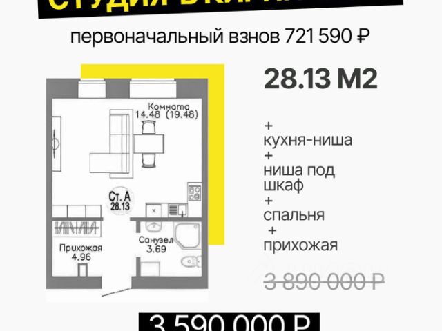 🔷 Минимальная стоимость жилья:2,7 млн руб.;