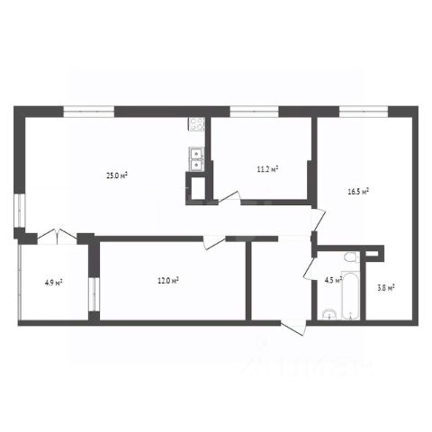 - Просторная 1-комнатная квартира большая кухня 12м2, (можно поставить диванчик)