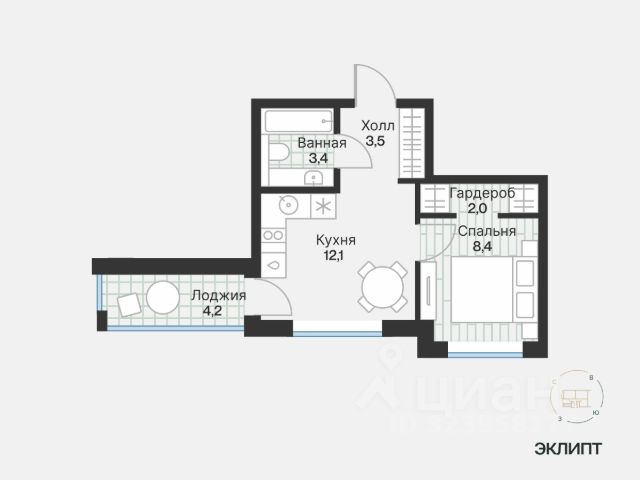 Планировка: две изолированные комнаты, кухня-гостиная.