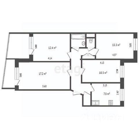 В продаже большая трёхкомнатная (фактически 4+:3 спальни и кухня-гостиная) квартира общей площадью 86,3 м2 не требующая вложений. Заходи и живи