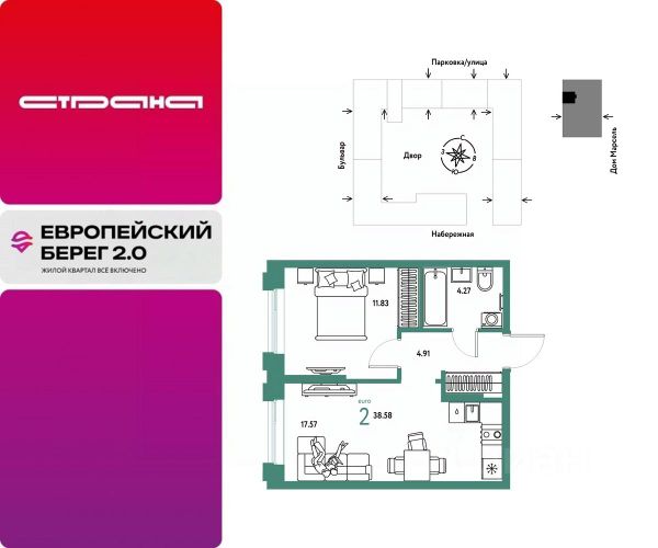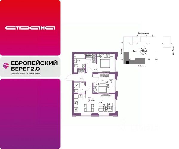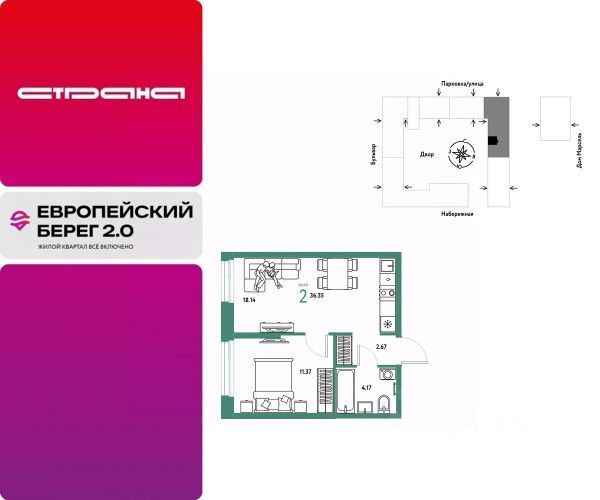 Объявление от застройщика Страна Девелопмент. Покупка квартиры защищена банком. Продается 1комнатная квартира на 7 этаже от застройщика Страна Девелопмент. Площадь квартиры 36,76 кв. м. Стоимость указана без учета акций. Европейский берег 2.0. — это продолжение легендарного жилого комплекса Европейский берег. Он включает все, что нужно для жизни, и даже больше. Этот квартал для тех, кто не готов тратить время на ненужное, жертвовать одним ради другого. Для тех, кто хочет получить все и сразу. Именно поэтому генеральная идея проекта — жилой квартал все включено. Все преимущества включены. Никаких исключений. ПРЕИМУЩЕСТВА Разнообразие планировок: от классических до квартир с мастер-спальней и террасами. Подземный паркинг с кладовыми, охраной и видеонаблюдением 24/7. Ремонт от застройщика: 5 вариантов на выбор. Закрытый двор с площадками и зонами отдыха: мост-акведук, тренажёры, лабиринты, гамаки и шезлонги. ОТДЕЛКА Базовая отделка или готовый ремонт от застройщика. В базовой отделке все черновые работы выполнены, подведены коммуникации, стены оштукатурены под маяк. В ремонт от застройщика входит 5 вариантов отделки, уже включено всё необходимое: от сантехники до кондиционера. СПОСОБЫ ПОКУПКИ Сотрудники "Страны Девелопмент" будут сопровождать вас на каждом этапе сделки, помогут получить одобрение по ипотеке или снизить ежемесячный платеж. - ипотека - материнский капитал - 100% оплата наличными - рассрочка - обмен — это выкуп вашей старой квартиры и зачисление полученных денежных средств в счет стоимости новой квартиры или в качестве первоначального взноса по ипотеке.