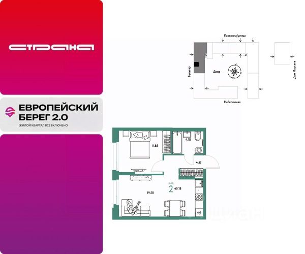 Объявление от застройщика Страна Девелопмент. Покупка квартиры защищена банком. Продается 1комнатная квартира на 4 этаже от застройщика Страна Девелопмент. Площадь квартиры 20,84 кв. м. Стоимость указана без учета акций. Европейский берег 2.0. — это продолжение легендарного жилого комплекса Европейский берег. Он включает все, что нужно для жизни, и даже больше. Этот квартал для тех, кто не готов тратить время на ненужное, жертвовать одним ради другого. Для тех, кто хочет получить все и сразу. Именно поэтому генеральная идея проекта — жилой квартал все включено. Все преимущества включены. Никаких исключений. ПРЕИМУЩЕСТВА Разнообразие планировок: от классических до квартир с мастер-спальней и террасами. Подземный паркинг с кладовыми, охраной и видеонаблюдением 24/7. Ремонт от застройщика: 5 вариантов на выбор. Закрытый двор с площадками и зонами отдыха: мост-акведук, тренажёры, лабиринты, гамаки и шезлонги. ОТДЕЛКА Базовая отделка или готовый ремонт от застройщика. В базовой отделке все черновые работы выполнены, подведены коммуникации, стены оштукатурены под маяк. В ремонт от застройщика входит 5 вариантов отделки, уже включено всё необходимое: от сантехники до кондиционера. СПОСОБЫ ПОКУПКИ Сотрудники "Страны Девелопмент" будут сопровождать вас на каждом этапе сделки, помогут получить одобрение по ипотеке или снизить ежемесячный платеж. - ипотека - материнский капитал - 100% оплата наличными - рассрочка - обмен — это выкуп вашей старой квартиры и зачисление полученных денежных средств в счет стоимости новой квартиры или в качестве первоначального взноса по ипотеке.