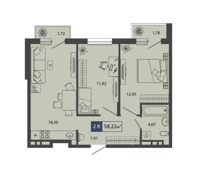 Продаётся квартира площадью 53.75 м2 в жилом комплексе "Смородина". Квартира находится на 1 этаже дома, который будет введен в эксплуатацию в 1 квартале 2026 года. Жилая площадь квартиры 22.40 м2, площадь просторной кухни — 16.71 м2. Среди особенностей планировки — изолированные комнаты с окнами на одну сторону, 1 совмещённый санузел. Жилой комплекс "Смородина" — это: уютный малоэтажный комплекс в районе ММС дома высотой 4 этажа квартиры от студий до семейных вариантов с отапливаемыми лоджиями экологичные материалы в благоустройстве территории 1 очередь — срок сдачи в 2025 году 2 очередь — III кв. 2026 3 очередь — IV кв. 2026 Окружение В 5 минутах ходьбы от проекта — озеро Липовое с песчаным пляжем и лесопарковая зона. Инфраструктура В шаговой доступности есть все для комфортной жизни: школы, детские сады, магазины и аптеки. Рядом с проектом — остановка общественного транспорта. Благоустройство Прямо во дворе — собственные грядки для жителей, где можно выращивать зелень и цветы. Для детей оборудованы детские площадки из натуральных материалов. Лобби Вдохновленные современными тенденциями наши парадные разработаны с акцентом на эстетическую привлекательность и практичность. Использование натуральных материалов и ярких цветовых акцентов создает атмосферу уюта и стиля. Планировки Среди многообразия продуманных планировок есть и уютные студии, и просторные семейные варианты. Во всех квартирах предусмотрены отапливаемые лоджии, где можно устроить зону отдыха или рабочий кабинет.