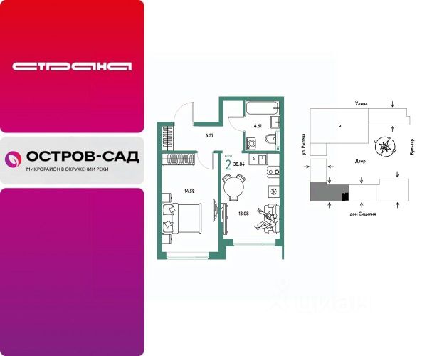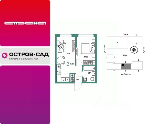 Новая квартира в ЖК "Остров-сад" напрямую от федеральной группы компаний "Страна Девелопмент". Финансовый партнер — Сбербанк России. Продается 2комнатная квартира на 8 этаже от застройщика Страна Девелопмент. Площадь квартиры 50,97 кв. м. ЖК "ОСТРОВ-САД" Жилой комплекс ЖК "Остров-сад" — новый квартал в районе ДОК в Тюмени недалеко от центра. Внутри ЖК планируется несколько школ и детсадов, торговая галерея, своя набережная, закрытые дворы-сады, несколько подземных и многоуровневых паркингов и пешеходный бульвар. Архитектура комплекса отсылает к истории ДОКа — отделка из красного кирпича, акцентные цвета штукатурки и необычная ступенчатая форма зданий. Всё для комфортной жизни на своём "острове" рядом с центром Тюмени. ПРЕИМУЩЕСТВА Квартиры с готовым ремонтом, возможность приобрести квартиру с кухонным гарнитуром и техникой. Развитое жилое пространство — закрытые дворы-сады, свои набережная и бульвар, торговая галерея на 1-м этаже, рядом детсады, школы и поликлиника. Служба охраны и видеонаблюдение в доме и во дворе 24/7. Несколько многоуровневых и подземных паркингов с охраной. ОТДЕЛКА Необходимые работы уже выполнены: подведены холодная, горячая вода и электричество, установлены батареи. В квартире не проводились отделочные работы: не выровнены стены и пол. ДИЗАЙНЕРСКАЯ ОТДЕЛКА В ЖК "Остров-сад" есть квартиры с готовым ремонтом. Пять вариантов на выбор в разных цветовых решениях. В ремонт также включены светильники, межкомнатные двери и даже кондиционер. Можно выбрать отдельно ремонт в ванной, для вас 4 стильных варианта с сантехникой. СПОСОБЫ ПОКУПКИ Сотрудники "Страна Девелопмент" будут сопровождать вас на каждом этапе сделки, помогут получить одобрение по ипотеке или снизить ежемесячный платеж. - ипотека - материнский капитал - 100% оплата наличными - рассрочка от застройщика 0%