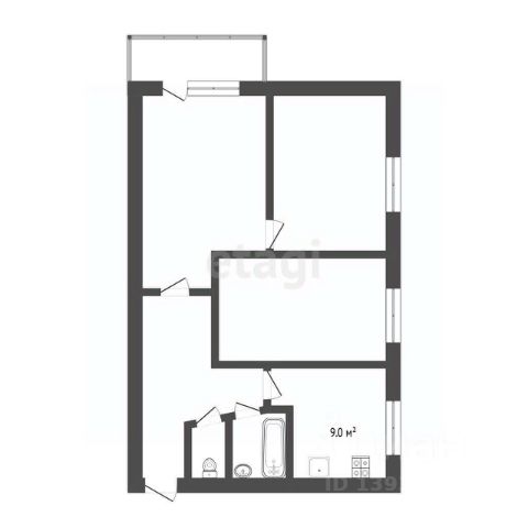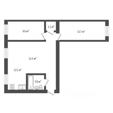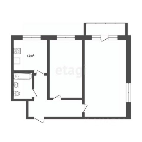 Площадь 44,3 м², 2 изолированные комнаты, удобная планировка