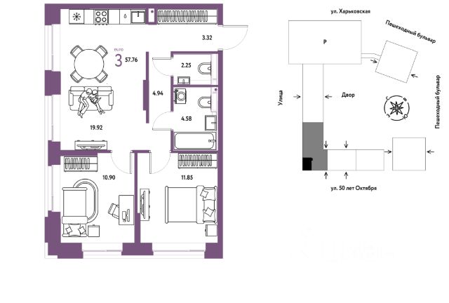 Новая квартира в ЖК "Сердце Сибири" напрямую от федерального застройщика "Страна Девелопмент". Финансовый партнер — банк "ДОМ.РФ". Продается 3комнатная квартира на 13 этаже от застройщика Страна Девелопмент. Площадь квартиры 79,15 кв. м. ЖК "Сердце Сибири" Жилой комплекс "Сердце Сибири" — это флагманский проект застройщика, в 4-х минутах от центра Тюмени. Философия комплекса воплощена в сочетании сибирских традиций и крепких натуральных материалов. ПРЕИМУЩЕСТВА - Квартал находится в деловом центре, неподалёку от исторической части Тюмени, в равной удалённости от всех районов. Торговые центры поблизости дают возможность быть в центре событий. В 10 минутах от жилого квартала расположены университеты, школы, детские сады. - В самом центре проходит пешеходный бульвар протяжённостью 640 м. с зелёными насаждениями и арт-объектами. На территории отдыха: праздничная площадь, обзорная площадка, памп-парк и др. - Основная идея благоустройства дворов — создание камерного, уютного пространства. Периметры кварталов образуют закрытые контуры, внутри которых расположились тихие дворы с местами для отдыха, игровыми и релакс-зонами. Благодаря сквозным парадным во дворе нет машин. Защита от посторонних, служба охраны и видеонаблюдение 24/7 — гарантия безопасности вашей семьи. ОТДЕЛКА Квартиры сдаются с предчистовой отделкой: произведена разводка электричества и отопления, выполнена стяжка пола, стены выровнены "под маяк", установлены розетки, выключатели и радиаторы. ДИЗАЙНЕРСКАЯ ОТДЕЛКА При покупке квартиры в ЖК "Сердце Сибири" можно включить стоимость ремонта в ипотеку. Пять вариантов на выбор: хлопковая нить, серый шторм, белый камень, шалфей, голубой вереск. СПОСОБЫ ПОКУПКИ Сотрудники "Страна Девелопмент" будут сопровождать вас на каждом этапе сделки, помогут получить одобрение по ипотеке или снизить ежемесячный платеж. - ипотека - рассрочка - с использованием материнского капитала -100% оплата наличными