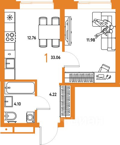 Продаётся 1-комнатная квартира в строящемся доме (Дом "Экологичный" (ГП-19)), срок сдачи: IV-кв. 2026, общей площадью 33.06 кв.м., на 4 этаже. Новый микрорайон "Домашний" от группы компаний "Страна Девелопмент" расположен в Калининском округе Тюмени, в районе аэропорта "Плеханово".