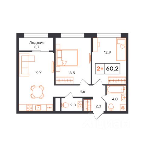 Самое выгодное предложение! Цена ниже чем у застройщика! Дом сдан, ключи на руках! Продается отличная двухкомнатная (2+) квартира с продуманной планировкой в современном жилом комплексе "Прео" в районе Тюменской Слободы. Кухна-гостиная - 18,6 м2 Комнаты - 10,7м2 и 10,3м2 Два санузла, один из которых можно переделать в гардеробную. Тюменская слобода - один из самых динамично развивающихся районов нашего города - новая, современная гимназия 4, детский сад, поликлиника в 2 минутах от дома. Магазины, аптеки, отделения банков в 5-10 минут ходьбы от дома. В этом году будет реализован проект нового парка , по типу экопара Затюменского. Излюбленное место как приезжих, так и местных жителей города. Звоните прямо сейчас. Цена дешевле чем у застройщика, отличная инвестиция! Дополнительно оплачивается комиссия с покупателя МЫ ГАРАНТИРУЕМ ФИНАНСОВУЮ БЕЗОПАСНОСТЬ ДЛЯ НАШИХ КЛИЕНТОВ. Код пользователя: 124825 Номер в базе: 1050333