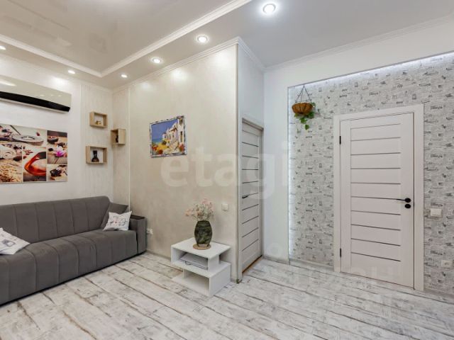 В кухне гостинной кухонный гарнитур из дорогостоящего материала в качественном исполнении с установленной каменной столешницей. Встроенная немецкая бытовая техника. На полу во всей квартире бесшовно выложен пол из белого кварц-винила, что позволяет сохранять комфортную температуру пола и при этом выдерживать твёрдую и ровную структуру пола. В каждой комнате наклеены качественные итальянские , плотные обои. Потолок натяжной во всей квартире . В гостиной оборудовано четыре