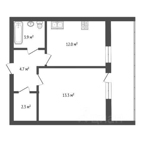Много функциональных зон: рабочее место, зона отдыха и кухни, отдельная спальня.