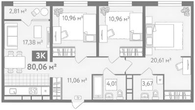 - Общая площадь с учетом утепленного балкона 71м2., кухня-гостиная 20 кв.м., детская комната, родительская спальня, два санузла