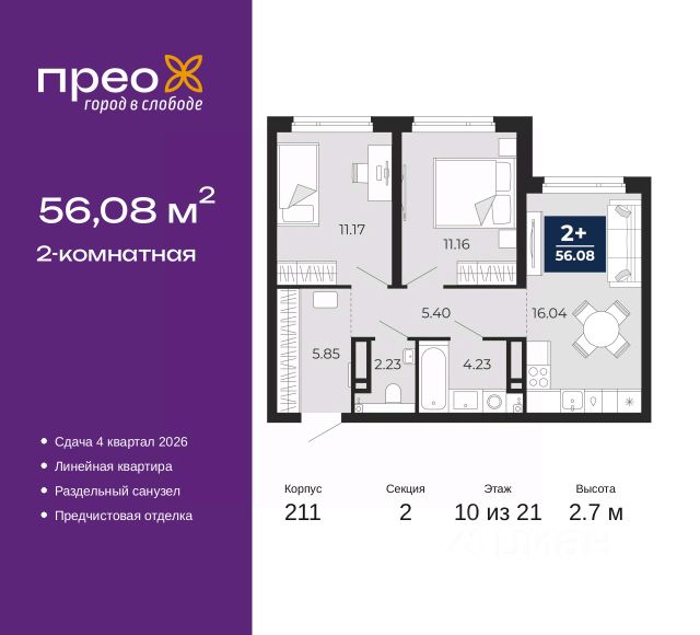 Продается 1-комн. квартира-студия от застройщика в ЖК "Уездные кварталы" на 5 этаже. Квартира без отделки, после оформления собственности можно делать ремонт. Общая площадь: 33.1 кв.м., площадь гостиной 22.9 кв.м., из которых 5 кв.м. выделено под кухонную зону. Все окна выходят на одну сторону. В квартире один балкон, один совмещенный санузел. Высота потолков 2.72 м. Дом монолитный, двухподъездный, переменной этажности, от 9 до 17 этажей. Квартира находится в 1-й секции высотой 17 этажей в корпусе ГП-5.1. На этаже 8 квартир. В подъезде 1 пассажирский и 1 грузовой лифт. Окончание строительства - 4 квартал 2026 года. Оформление сделки по договору долевого участия. "Уездные кварталы" - семейный жилой комплекс комфорт-класса с авторской архитектурой и трехуровневым ландшафтным озеленением. Рядом расположены крупные транспортные развязки, которые позволяют добраться в любую точку города за 15 минут. Жилой комплекс находится в современном районе с развитой инфраструктурой, на первой линии Тюменской Слободы. Вокруг есть всё необходимое в шаговой доступности: новые детские сады и школы, остановки общественного транспорта, магазины, кафе и рестораны, поликлиника, детская школа искусств, парки и спортивный комплекс. На первых этажах квартала расположена собственная коммерческая сеть, а также свой соседский центр. Проект включает 5 домов переменной этажности с более чем 100 планировками - с террасами, французскими балконами и мастер-спальнями. Закрытые дворы оборудованы интерактивными площадками для игр, спортивными зонами и местами тихого отдыха. Вдоль жилого комплекса расположен пешеходный бульвар с сухим фонтаном, а для автомобилей предусмотрен теплый паркинг. Часть квартир можно приобрести с ремонтом, мебелью и техникой от застройщика, а расходы включить в ипотечный платеж. #26sdVs