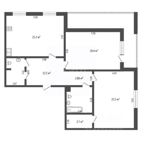 Уважаемые покупатели! Солнечная квартира формата 2+. В кухне-гостиной зона кухни оформлена большеформатным керамогранитом 0,60м*1,20м с принтом мрамора, выполнен вывод для круглой вытяжки. Обилие точечного света позволяет регулировать освещение, выбирая необходимые зоны кухни, либо зоны гостиной. Выполнены выводы под телевизор в 2 местах гостиной. Электрические теплые полы находятся в обоих санузлах. Во время отопительного сезона квартира тёплая. В обоих санузлах выполнены необходимые выводы под стиральную машинку, установлены электрические системы вентиляции, а также достаточное количество розеток. Стояки в обоих санузлах поменяны. В большом санузле также есть вывод для водонагревателя. В санузлах выложен большеформатный керамогранит 0,60м*1,20м. В коридоре на полу также керамогранит, стилизованный под доски. В кухне-гостиной на полу качественный ламинат, в зоне окна - плитка. В комнате, рядом с кухней гостиной, также кафель.
