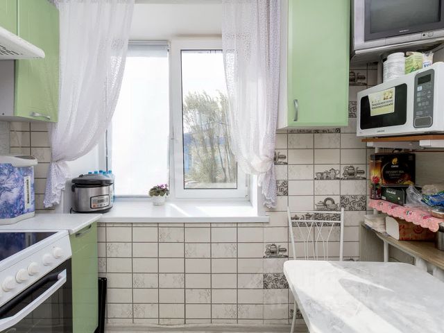 -В квартире остается все что на фото: кухонный гарнитур, шкафы в комнатах, вся сантехника.