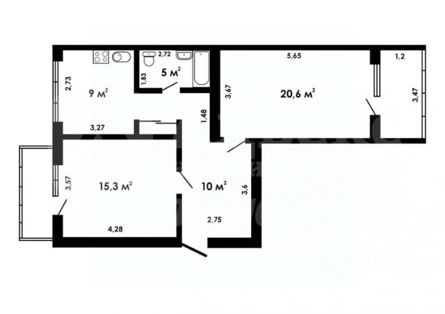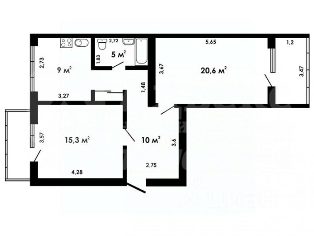 Общая площадь: 97 м²