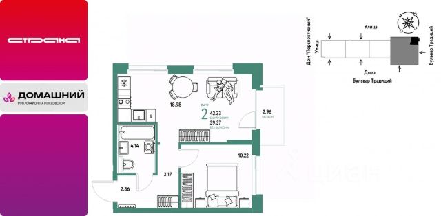 Новая квартира в ЖК "Домашний" напрямую от федеральной группы компаний "Страна Девелопмент". Финансовый партнер — банк "ДОМ.РФ". Продается 2комнатная квартира на 2 этаже от застройщика Страна Девелопмент. Площадь квартиры 43,17 кв. м. Стоимость указана без учета акций. Жилой комплекс "Домашний" это первый цифровой район в Сибири, где жители заходят в парадные по Face ID, автомобили заезжают в паркинг по сканированию номера, а лифт автоматически спускается на первый этаж при открытии домофона. Даже во дворах — USB-розетки и беседки с подогревом. ПРЕИМУЩЕСТВА: -Школа, зеленый сквер и пешеходный бульвар прямо внутри квартала -Закрытые дворы у каждого дома для активного и спокойного отдыха -Охрана, видеонаблюдение 24/7 и доступ к камерам в мобильном приложении -Сквозные парадные с прозрачными входными группами, колясочными и велосипедными -Паркинг с въездом по считыванию номеров, системой контроля выбросов CO2, тележками для покупок и велопарковкой -Торговая галерея на первом этаже дома ОТДЕЛКА Квартиры сдаются с предчистовой отделкой: произведена разводка электричества и отопления, выполнена стяжка пола, стены выровнены "под маяк", установлены розетки, выключатели и радиаторы. ДИЗАЙНЕРСКАЯ ОТДЕЛКА При покупке квартиры в ЖК "Домашний" можно включить стоимость ремонта в ипотеку. Пять вариантов на выбор: Хлопковая нить, Серый шторм, Белый камень, Шалфей, Голубой вереск. СПОСОБЫ ПОКУПКИ: - ипотека - материнский капитал -100% оплата наличными Сотрудники "Страна Девелопмент" будут сопровождать вас на каждом этапе сделки, помогут получить одобрение по ипотеке или снизить ежемесячный платеж.