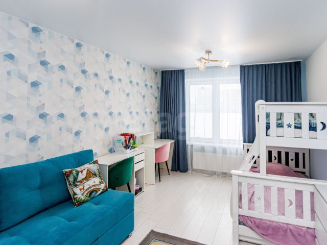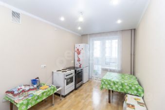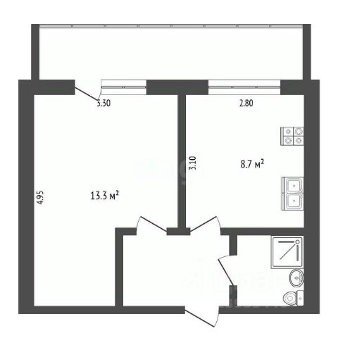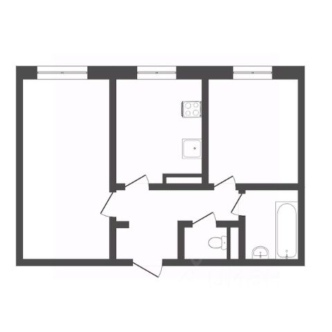 Большая комната имеет 2 окна, что позволяет при необходимости зонировать пространство на обеденную зону и зону отдыха.