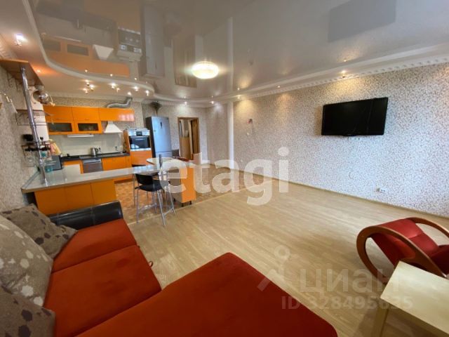 Гостиная(34,7+4.3 кв.м)-зона кухни плитка с подогревом, остальное ламинат. Выход на балкон дверь и окно убрано(перепланировки ни какой больше нет, при необходимости можно установить обратно дверь и окно), балкон(4,9кв.м) утеплен, пол плитка с подогревом(используется очень редко, так как вполне тепло зимой), окна выходят на ул.50 лет ВЛКСМ. Есть небольшая кладовка(4,3кв.м)-где установлен бойлер, стиральная машинка. Также есть многофункциональный кондиционер.