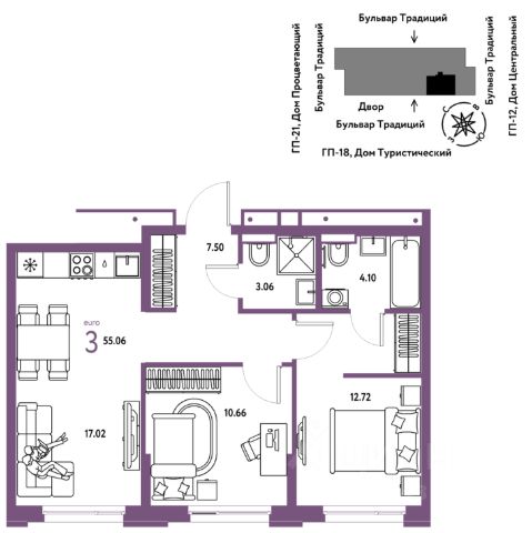 Новая квартира в ЖК "Домашний" напрямую от федеральной группы компаний "Страна Девелопмент". Финансовый партнер — банк "ДОМ.РФ". Продается 3комнатная квартира на 8 этаже от застройщика Страна Девелопмент. Площадь квартиры 55,06 кв. м. ЖК "ДОМАШНИЙ" Жилой комплекс "Домашний" это первый цифровой район в Сибири, где жители заходят в парадные по Face ID, автомобили заезжают в паркинг по сканированию номера, а лифт автоматически спускается на первый этаж при открытии домофона. Даже во дворах — USB-розетки и беседки с подогревом. ПРЕИМУЩЕСТВА -Школа, зеленый сквер и пешеходный бульвар прямо внутри квартала -Закрытые дворы у каждого дома для активного и спокойного отдыха -Охрана, видеонаблюдение 24/7 и доступ к камерам в мобильном приложении -Сквозные парадные с прозрачными входными группами, колясочными и велосипедными -Паркинг с въездом по считыванию номеров, системой контроля выбросов CO2, тележками для покупок и велопарковкой -Торговая галерея на первом этаже дома ОТДЕЛКА Квартиры сдаются с предчистовой отделкой: произведена разводка электричества и отопления, выполнена стяжка пола, стены выровнены "под маяк", установлены розетки, выключатели и радиаторы. ДИЗАЙНЕРСКАЯ ОТДЕЛКА При покупке квартиры в ЖК "Домашний" можно включить стоимость ремонта в ипотеку. Пять вариантов на выбор: Хлопковая нить, Серый шторм, Белый камень, Шалфей, Голубой вереск. СПОСОБЫ ПОКУПКИ Сотрудники "Страна Девелопмент" будут сопровождать вас на каждом этапе сделки, помогут получить одобрение по ипотеке или снизить ежемесячный платеж. - ипотека - материнский капитал -100% оплата наличными