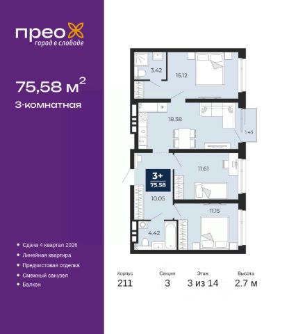 Спешите оформить бронирование на этих условиях, срок предложения ограничен! Стоимость квартиры указана со скидкой, ваша экономия составит 371,058 руб. Информация по телефону, наши менеджеры вам все расскажут. Продается 1-комн. квартира от застройщика с предчистовой отделкой в ЖК "Прео" на 8 этаже. Общая площадь: 50.26 кв.м., жилая: 12.25 кв.м., площадь просторной кухни-столовой: 20.2 кв.м. Все окна выходят на одну сторону. В квартире одна лоджия, один совмещенный санузел. Высота потолков 2.7 м. Дом монолитный, черырехподъездный, переменной этажности, от 14 до 21 этажей. Квартира находится в 1-й секции высотой 21 этаж в корпусе 211. На этаже 8 квартир. В подъезде 1 пассажирский и 1 грузовой лифт. Окончание строительства - 4 квартал 2026 года. Оформление сделки по договору долевого участия. Преображенский — один из самых привлекательных районов для жизни! Это полностью самостоятельный жилой район с точки зрения инфраструктуры. Преображенский находится между Московским и Червишевским трактами в квартале улиц Закалужская — Вьюжная — Александра Протозанова. Не нужно ждать, когда появится инфраструктура — переезжайте на всё готовое. Вблизи расположены действующие школа и детский сад. В этом году откроется еще один сад, а в следующем году — школа. По соседству с Преображенским запланировано строительство городского парка "Комарово" площадью 38 гектар. За 10 минут можно доехать на автомобиле до крупных ТРЦ: "Лента", "Кристалл", "Леруа Мерлен", "Метро" и "Ашан". С 2018 года в районе открыт Соседский центр — пространство, созданное для формирования добрососедской среды, совместного досуга, общения и реализации соседских инициатив. Здесь проходят встречи соседей, а также сами жители района организовывают мероприятия. Организатором такого события может стать любой желающий. В квартирах выполнена качественная предчистовая отделка. Гладкие стены с финишным выравниванием по маякам. Ровный потолок для установки натяжного потолка. Установлены пятикамерные окна с двойным стеклопакетом (3 стекла). Дизайнерские холлы с видеонаблюдением, безбарьерным и прозрачным входом всегда светло и спокойно. На первом этаже есть просторные колясочные, где все жители могут оставлять свои коляски и велосипеды. В Преображенском есть всё, что нужно для активного отдыха и занятий спортом. Мы сделали большое футбольное поле с безопасным покрытием. Также установили хоккейный корт, который оборудован по всем необходимым стандартам. Во дворах можно делать упражнения на специальных площадках с турниками. Весь район мы обустроили велодорожками, которые связаны в единый маршрут. У нас есть сухие фонтаны, бьющие из земли, деревья, веревки, сетки, скалодром, газон, песок и резинка — осталось просто дать своему ребенку право на свободную игру. По-настоящему хорошие дворы — это те, которые дети предпочитают соцсетям и телевизору. Аккредитация в банках: ОАО "Альфа-Банк", ПАО Банк "ВТБ", "Сбербанк России", ПАО "Газпромбанк", ПАО "Банк Уралсиб" и других. #2MdFT3