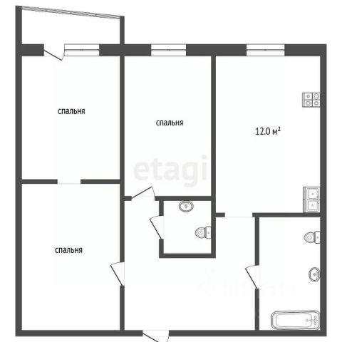 • Комната 12 м² — идеальна под детскую или вторую спальню.