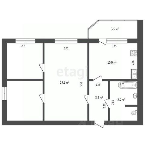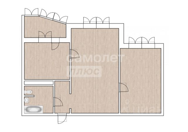 В квартире три комнаты площадью 15-19-19 кв.м., кухня-гостиная 15 кв.м., два балкона по 3 кв.м., раздельный санузел.