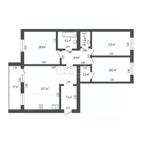 • ✅ Минимальная площадь: 32,8 м²