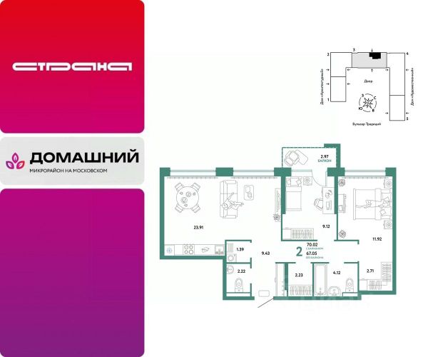 Новая квартира в ЖК "Домашний" напрямую от федеральной группы компаний "Страна Девелопмент". Финансовый партнер — банк "ДОМ.РФ". Продается 2комнатная квартира на 10 этаже от застройщика Страна Девелопмент. Площадь квартиры 42,24 кв. м. ЖК "ДОМАШНИЙ" Жилой комплекс "Домашний" это первый цифровой район в Сибири, где жители заходят в парадные по Face ID, автомобили заезжают в паркинг по сканированию номера, а лифт автоматически спускается на первый этаж при открытии домофона. Даже во дворах — USB-розетки и беседки с подогревом. ПРЕИМУЩЕСТВА -Школа, зеленый сквер и пешеходный бульвар прямо внутри квартала -Закрытые дворы у каждого дома для активного и спокойного отдыха -Охрана, видеонаблюдение 24/7 и доступ к камерам в мобильном приложении -Сквозные парадные с прозрачными входными группами, колясочными и велосипедными -Паркинг с въездом по считыванию номеров, системой контроля выбросов CO2, тележками для покупок и велопарковкой -Торговая галерея на первом этаже дома ОТДЕЛКА Квартиры сдаются с предчистовой отделкой: произведена разводка электричества и отопления, выполнена стяжка пола, стены выровнены "под маяк", установлены розетки, выключатели и радиаторы. ДИЗАЙНЕРСКАЯ ОТДЕЛКА При покупке квартиры в ЖК "Домашний" можно включить стоимость ремонта в ипотеку. Пять вариантов на выбор: Хлопковая нить, Серый шторм, Белый камень, Шалфей, Голубой вереск. СПОСОБЫ ПОКУПКИ Сотрудники "Страна Девелопмент" будут сопровождать вас на каждом этапе сделки, помогут получить одобрение по ипотеке или снизить ежемесячный платеж. - ипотека - материнский капитал -100% оплата наличными