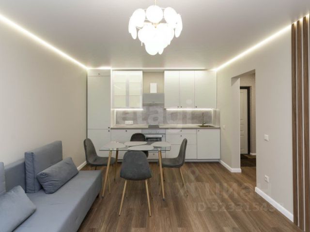 Владелец квартиры разделил комнату пополам перегородкой, в результате чего получилась малогабаритная двушка со спальней (вход из коридора) и залом (вход из кухни).