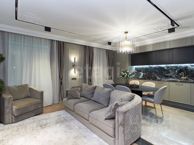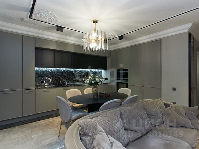 Планировка включает три спальни 20,9 кв.м, 18,6 кв.м, 16 кв.м, большой гардероб, просторную кухню-гостиную 32,7 кв.м объединенную с зоной отдыха, где многоуровневое освещение, включая трековые светильники, стильные люстры и скрытую LED-подсветку, создает разноплановый эффект. Кухонный гарнитур со столешницей из цельного натурального камня (Мексика) укомплектован встроенной техникой премиум-класса, кухонный стол изготовлен на заказ. Современная ванная комната с душевой зоной и ванной из натурального камня. Сан.узел с инсталляцией. Отделка керамический гранит (Италия) и мозаика. Встроенная стиральная машинка, сушилка, боллер есть, но не использовался (своя котельная, горячая вода без отключений) Дополнительные преимущества — изолированная гардеробная. Лоджия 7,7 кв.м с теплым полом и вместительной морозильной камерой.