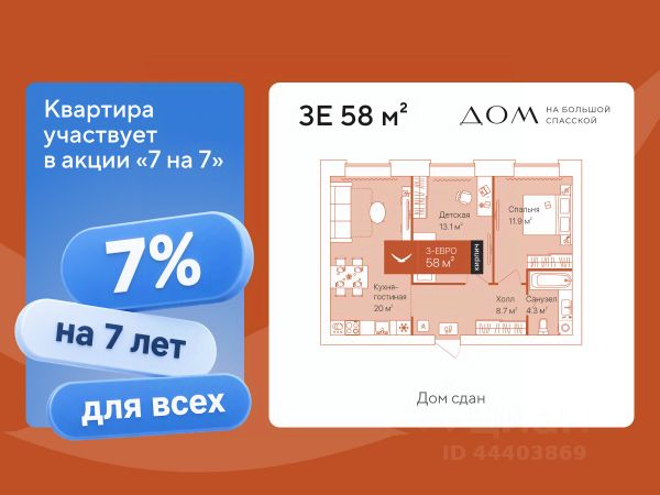 Условия покупки для этой квартиры: Cтавка 7% для всех. Срок ставки 7 лет. Ежемесячный платеж 44 901 руб. в месяц. Первоначальный взнос 20% или 1 688 291 руб Двухкомнатная квартира площадью 38,2 м² Классическая двухкомнатная квартира правильной формы. Окна выходят на две стороны — в одной из спален остекление угловое. В квартире выполнена предчистовая отделка, поэтому ремонт пройдёт проще и быстрее. Стены выровнены и оштукатурены, пол готов к финишному покрытию. Установлены входная сейф-дверь, пластиковые окна, розетки и выключатели. Дом построен на улице Республики. ЖК сдан. Рядом всё, что нужно: Гилёвская роща в 7 минутах на машине, школа и детский сад в пешей доступности, кафе, пункты выдачи и пешеходная аллея возле дома. Двор без машин. Для автомобилей сейчас есть гостевая парковка рядом и строится многоуровневый паркинг. Для отдыха во дворе сделали амфитеатр, поставили перголы с гирляндами и подготовили многоуровневое озеленение. Для маленьких жителей готова детская площадка из натуральных материалов. Чтобы было безопасно, по периметру домов работает видеонаблюдение. ЖК построил ПСК Дом девелопмент — застройщик с фокусом на развитие Тюмени с 26-летним опытом на рынке недвижимости. Способы покупки: — ипотечные программы — обмен вашего жилья на новую квартиру — дистанционная покупка — рассрочка Узнать дополнительную информацию и записаться на встречу в офисе продаж можно по номеру, указанному в объявлении.