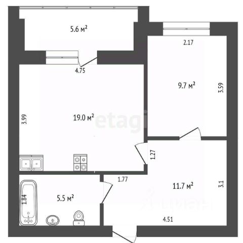 планировкой: общая площадь 58,3 кв.м. и плюсом к данной площади