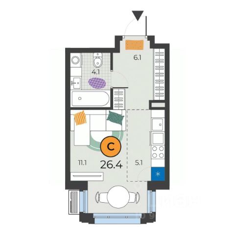 лоджия 4,8 кв.м.