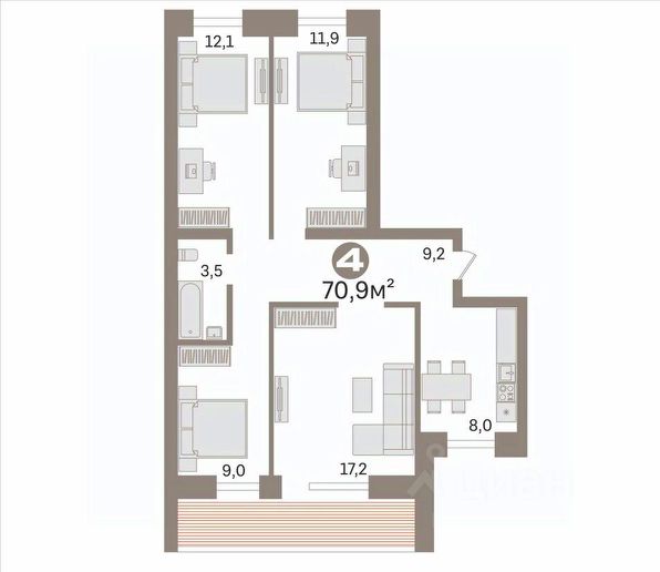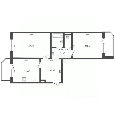 Уютная трехкомнатная квартира в теплом кирпичном доме. Окна выходят на парк и во двор.
