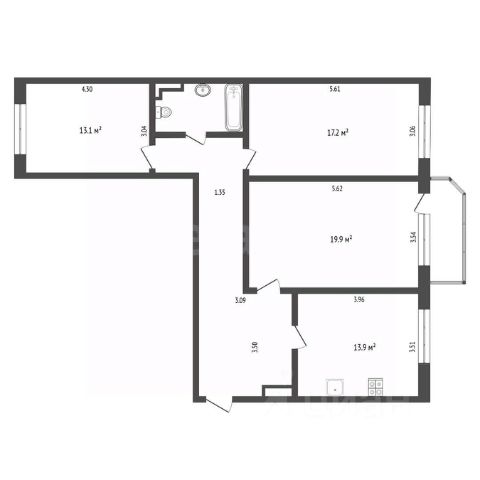 Двухкомнатная квартира площадью 52 кв.м на третьем этаже. Жилая площадь 29,1 кв.м. Кухня площадью 9 кв.м. Изолированные комнаты правильной формы. Большая лоджия (6 м) с двумя входами из кухни и комнаты. Окна выходят на улицу, на солнечную сторону, поэтому в квартире целый день много естественного солнечного света. высота потолков 2,7 м. Санузел раздельный. Коридор 6м.