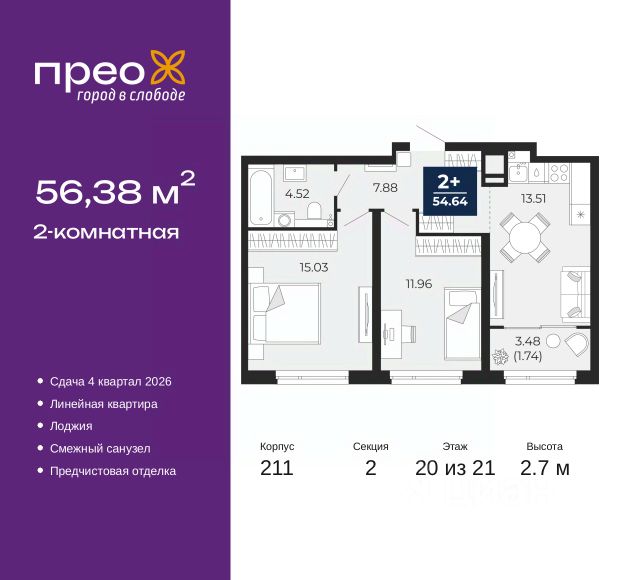 Продается 2-комн. квартира с европланировкой и предчистовой отделкой в ЖК "Уездные кварталы" на 8 этаже. Общая площадь: 52.9 кв.м., жилая: 24.1 кв.м., суммарная площадь гостиной-столовой с кухонной зоной: 22.5 кв.м. Европланировка, за счет большой площади кухни-гостиной квартира выглядит просторной и очень удобна для жизни. Квартира угловая, идеально подойдет любителям тишины и панорамных видов. В квартире одна лоджия, один совмещенный санузел. Высота потолков 2.72 м. Дом монолитный, черырехподъездный, переменной этажности, от 9 до 16 этажей. Квартира находится в 3-й секции высотой 9 этажей в корпусе ГП-5.2. На этаже 4 квартиры. В подъезде 1 пассажирский и 1 грузовой лифт. Окончание строительства - 4 квартал 2026 года. Оформление сделки по договору долевого участия. "Уездные кварталы" - семейный жилой комплекс комфорт-класса с авторской архитектурой и трехуровневым ландшафтным озеленением. Рядом расположены крупные транспортные развязки, которые позволяют добраться в любую точку города за 15 минут. Жилой комплекс находится в современном районе с развитой инфраструктурой, на первой линии Тюменской Слободы. Вокруг есть всё необходимое в шаговой доступности: новые детские сады и школы, остановки общественного транспорта, магазины, кафе и рестораны, поликлиника, детская школа искусств, парки и спортивный комплекс. На первых этажах квартала расположена собственная коммерческая сеть, а также свой соседский центр. Проект включает 5 домов переменной этажности с более чем 100 планировками - с террасами, французскими балконами и мастер-спальнями. Закрытые дворы оборудованы интерактивными площадками для игр, спортивными зонами и местами тихого отдыха. Вдоль жилого комплекса расположен пешеходный бульвар с сухим фонтаном, а для автомобилей предусмотрен теплый паркинг. Часть квартир можно приобрести с ремонтом, мебелью и техникой от застройщика, а расходы включить в ипотечный платеж. #zmSElv